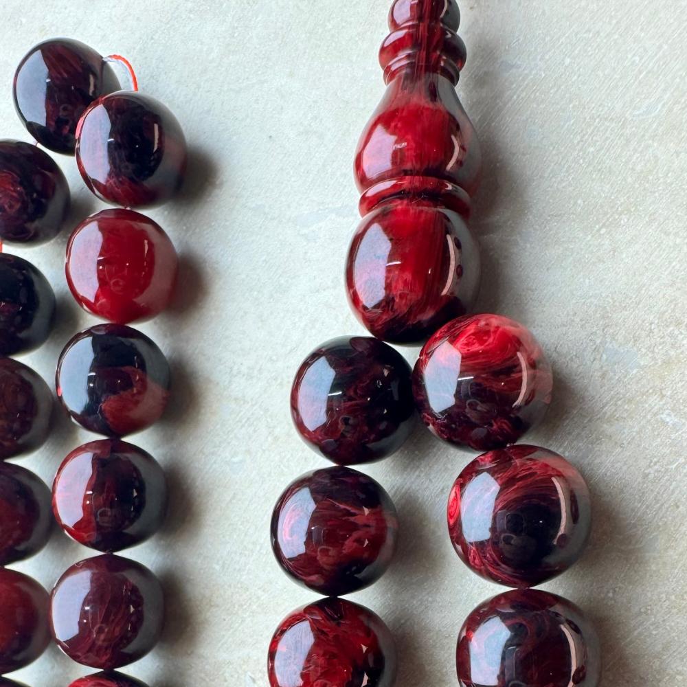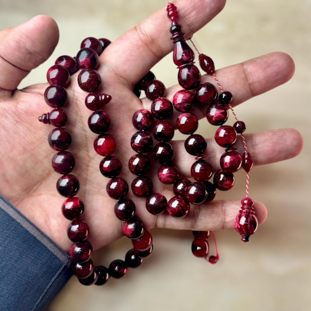 مسباح من عصي بكلايت بلون توتي معرق خراطة حسن سكر يأتيك بتمليكة مشكوكة يدويا بأجود خيوط الحرير