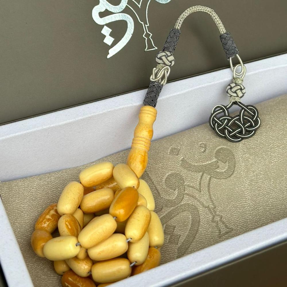 سبحة كهرمانية تأتيك كقطعة فنية من مُخملي، تُضفي لمسة مميزة على إطلالتك.