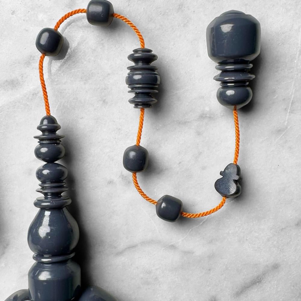 سبحة بولينج اسمنتي مصنوعة من كور بولينج صب جديد مع خراطة الزعيم وقصة تفاحية تأتي مع طقم تمليكة مشكوك بأجود خيوط الحرير لتكون إضافة مميزة لروتينك اليومي.
