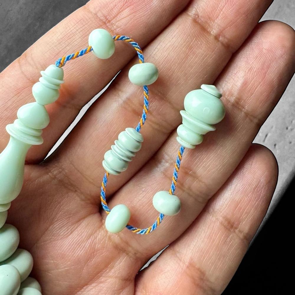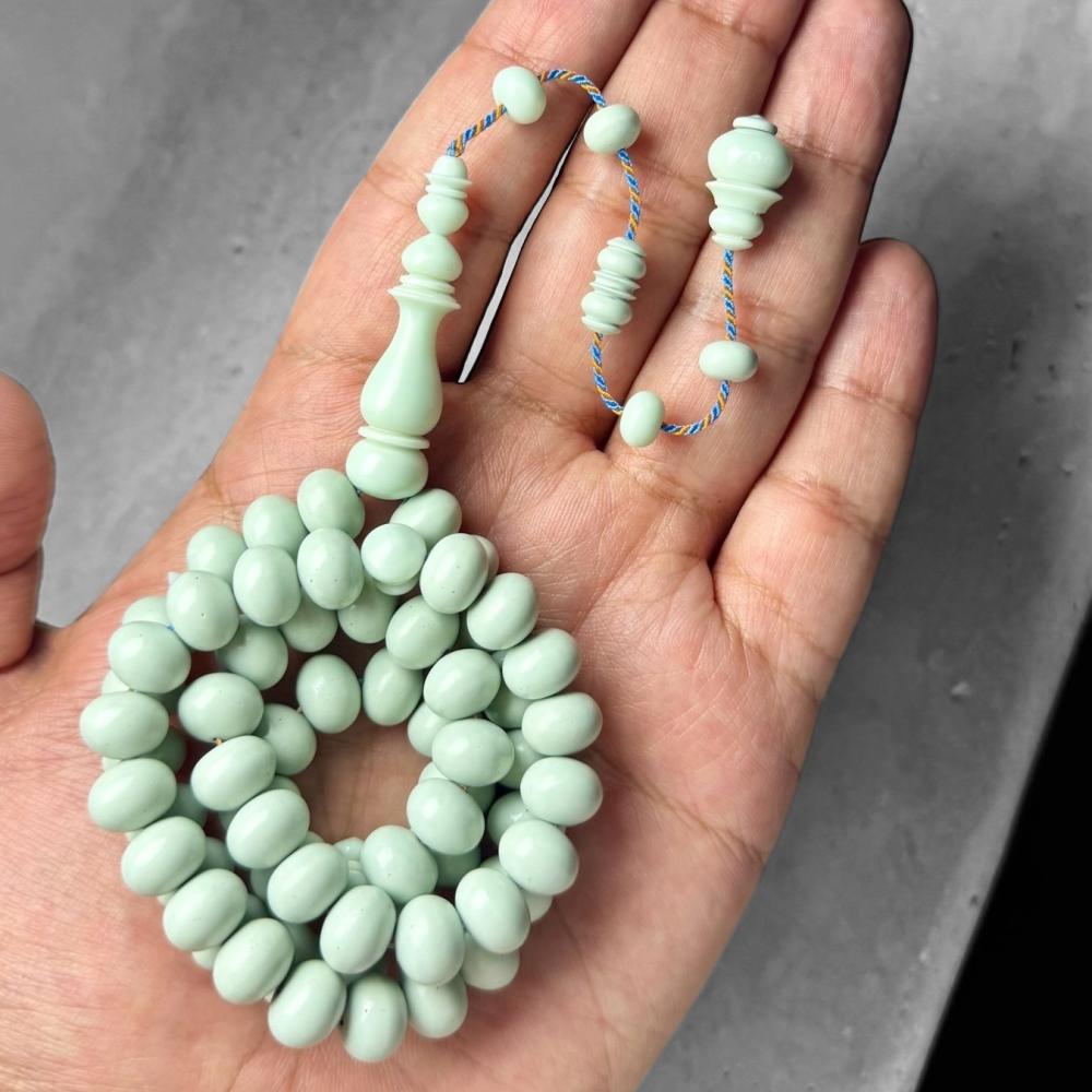 مسباح ذروي بولنق صب جديد من السبح المصنعة مقاس 9.5×7.5 ملم يحتوي على 61 خرزة مشكوكة يدويًا بأجود خيوط الحرير لتجربة مريحة وفاخرة تترك أثر لكل من يلمسه.