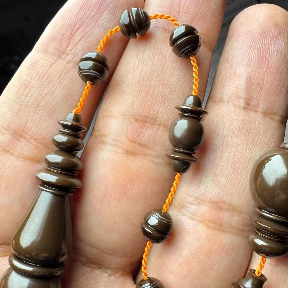 مسباح من كور بولنق صب قديم بلون ككاوي خراطة ابراهيم الدكتور يأتيك بتمليكة محززة بالكامل ومشكوك بأجود خيوط الحرير