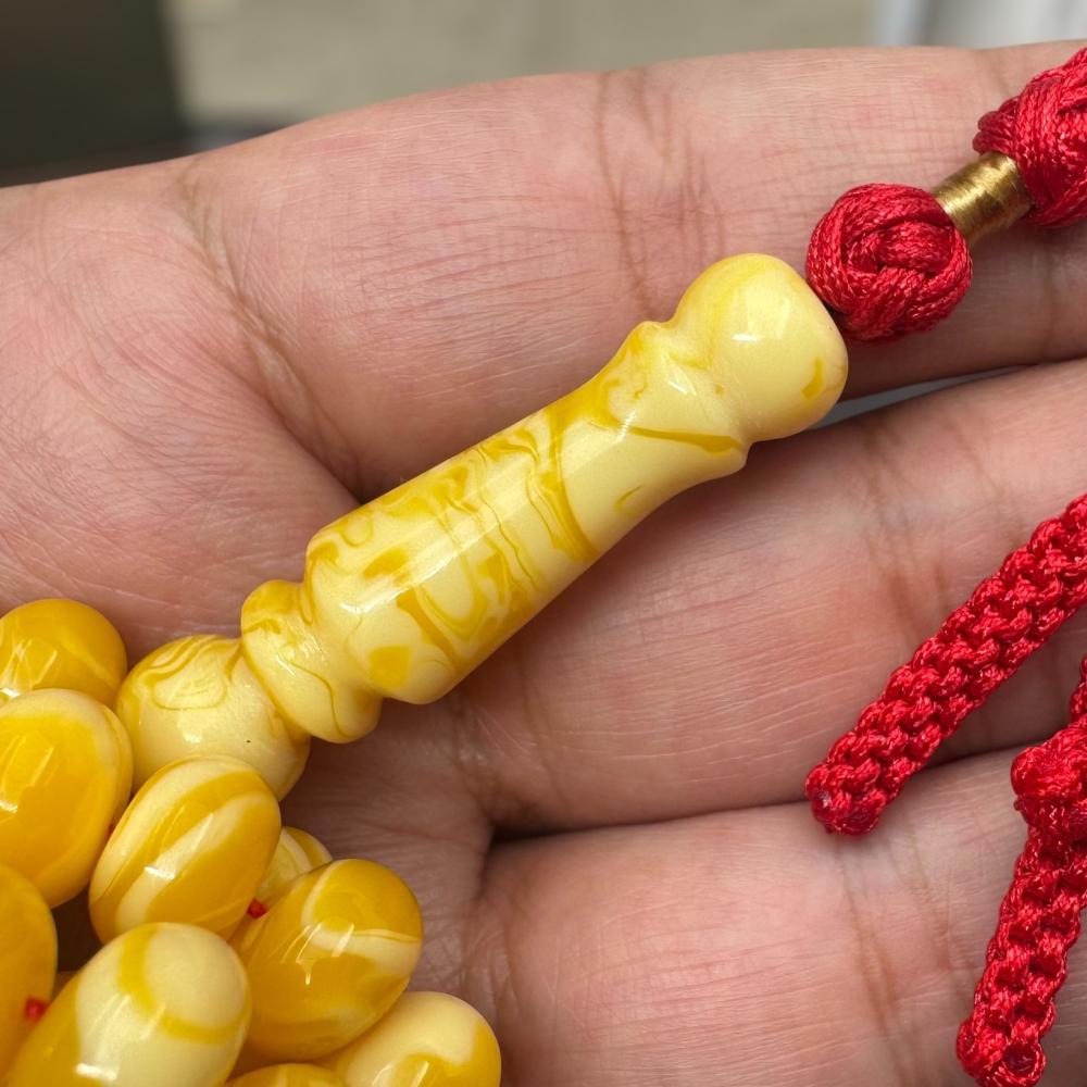 سبحة تراب الكهرمان الذروي الفاخر مع 66 خرزة وخيوط حرير فاخرة بتصميم محاكٍ للكهرمان القديم إذا كنت من محبي الفخامة لا تفوت الفرصة خليها لك قبل ما يخلص.