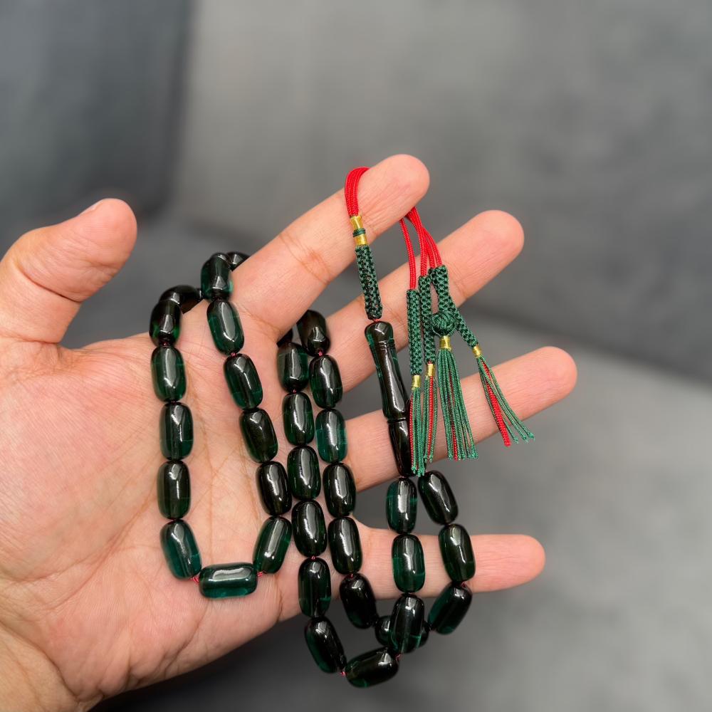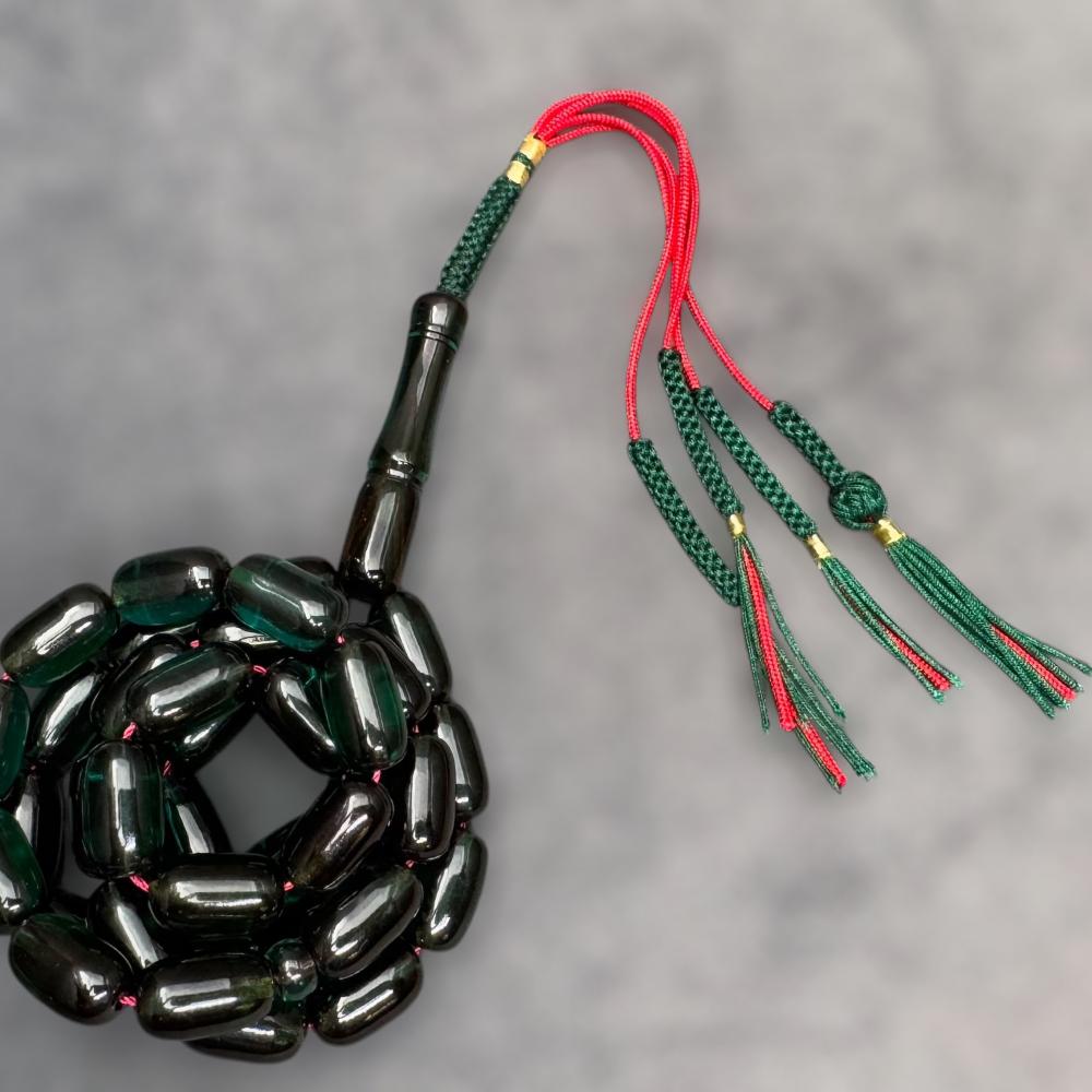 مسباح زعفران بلون زيتي بشفافية ياتيك بكركوشة شك يدوي