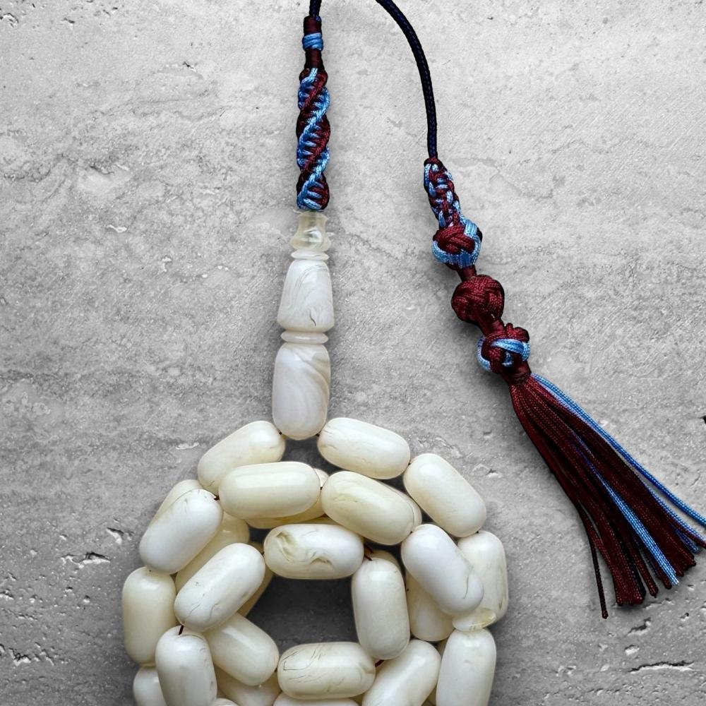 مستكة مسباح لؤلؤي بتعريق طبيعي ولمعة شفافة مصنوع بعناية من خرز ناعم وفاخر ومشدود بكركوشة تفصيل يدوي بخيط حرير ثقيل .. هادي في صوته ثقيل في حضوره ويلبس ذوقك بصمت.