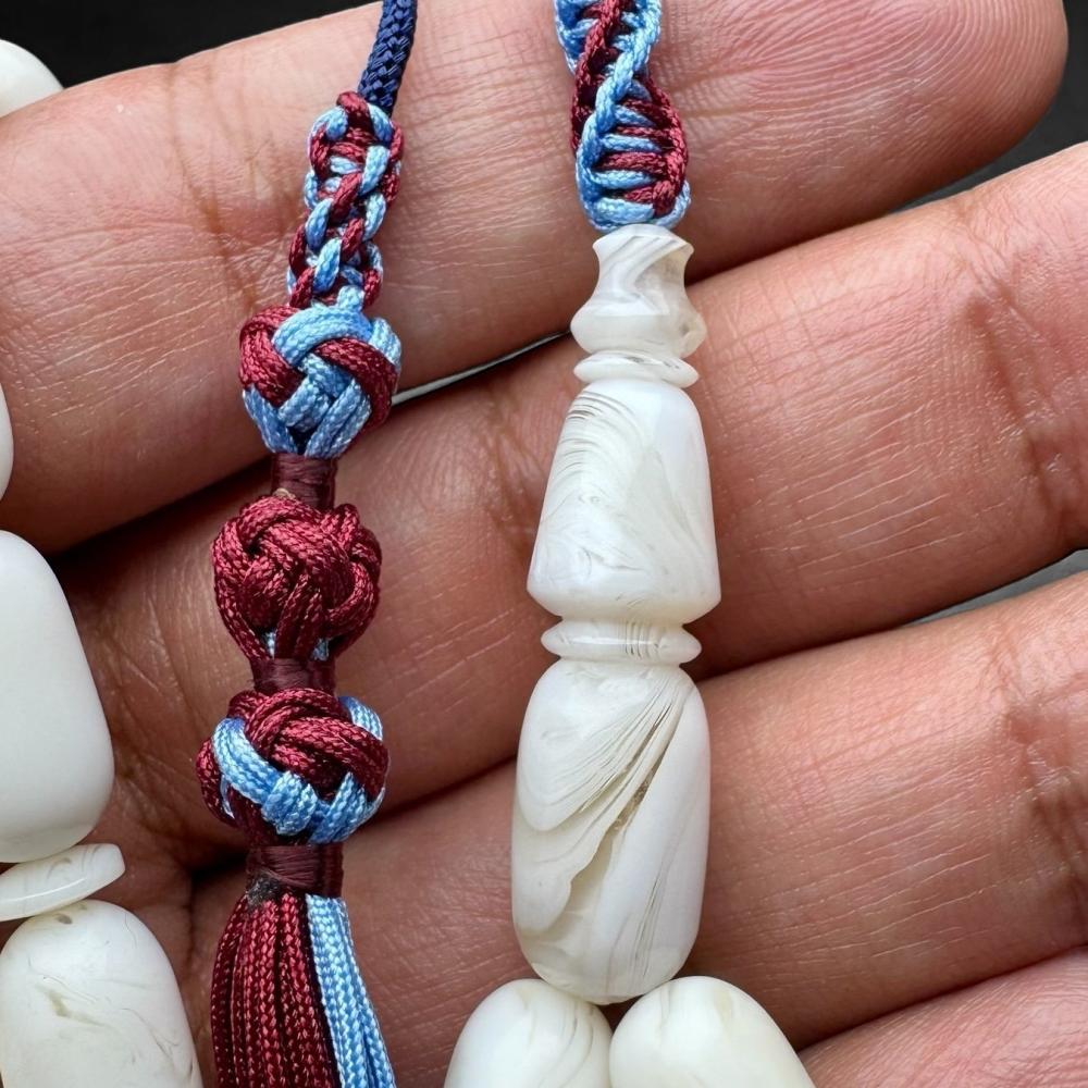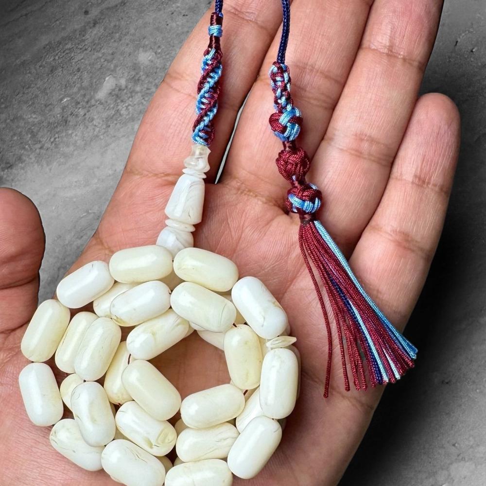 • مستكة مسباح لؤلؤي كل خرزة تحمل تعريق طبيعي خاص فيها وكأنها محفورة على هدوء.